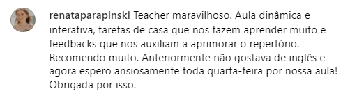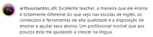 "A melhor forma de destravar o seu inglês é usar suas paixões ao seu favor. É assim que eu guio meus alunos para que eles realmente aprendam Inglês e falem com confiança!"
